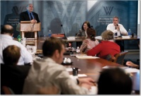 “This research provides an early glimpse into the new and exciting places where nanotechnology can take us,” said Project on Emerging Nanotechnologies Director David Rejeski at the session, which also served as the release of the new report NanoFrontiers: Visions for the Future of Nanotechnology. “This type of work helps us to see beyond first generation, ‘gee-whiz’ nanotech applications like better tennis racquets or anti-static fabrics, and reach for an end to human suffering from Parkinson’s, heart disease, and even cancer.”
